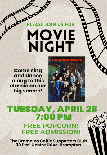 Celtic game April 26th @ 12:30 pm , club opens at 11:30 am